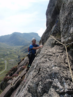 I'd met Janet and get husband earlier in the year at the Tyn y Coed pub in Capel Curig. She is working toward her Mountain Instructor qualification and she kindly offered some rock-climbing instruction with me the mock (or real) client. After bumping into her again a month later I was reminded of the offer and the date was set. The only variable being the notoriously wet north Wales summer.