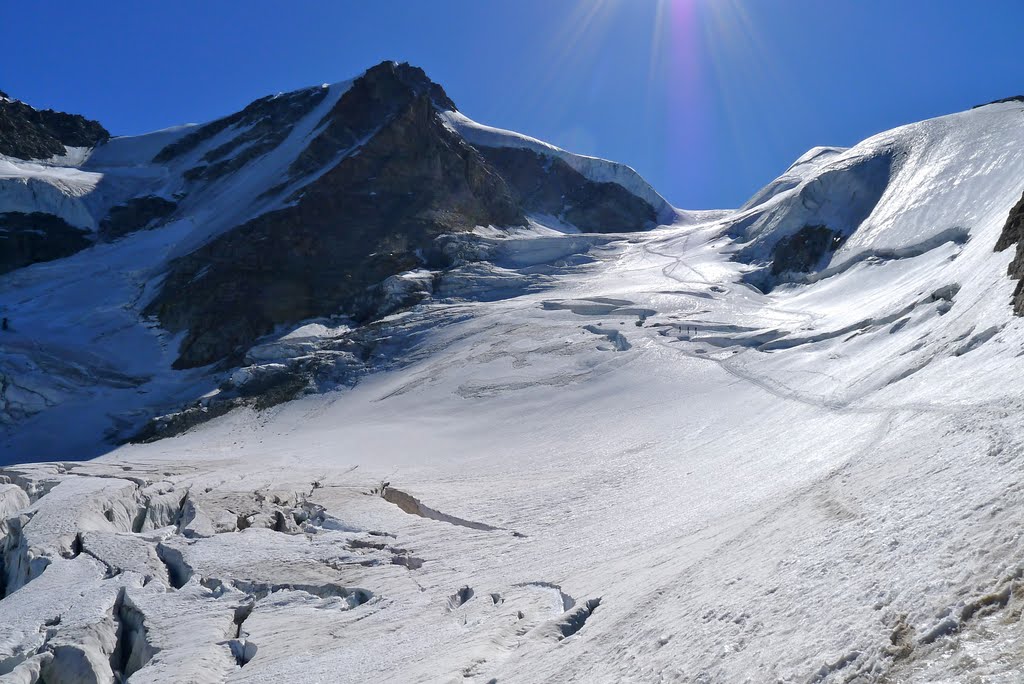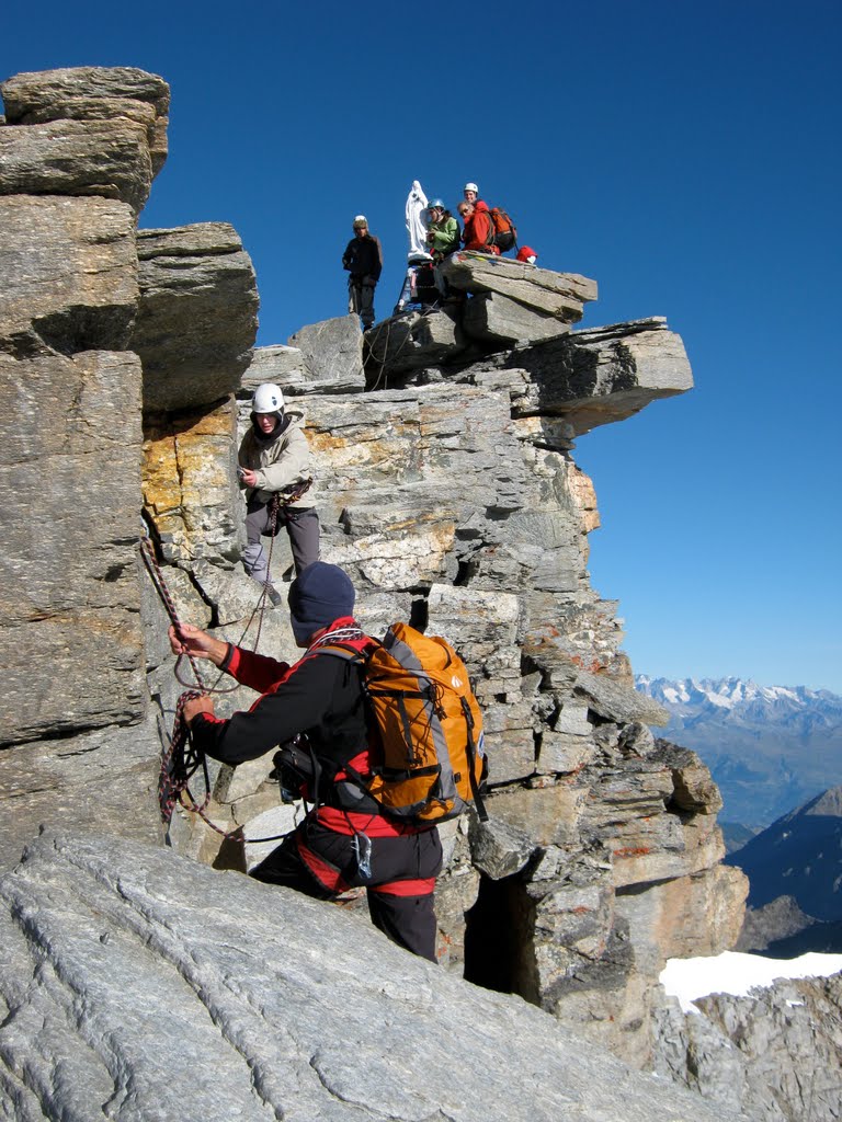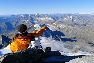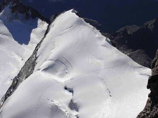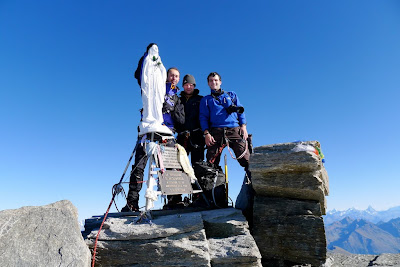 A few moves later and we were standing on the summit of Gran Paradiso, 4061m, with amazing views across the whole Alps. Stephano reeled off the names but the Matterhorn and Mont Blanc announced themselves in the distance.